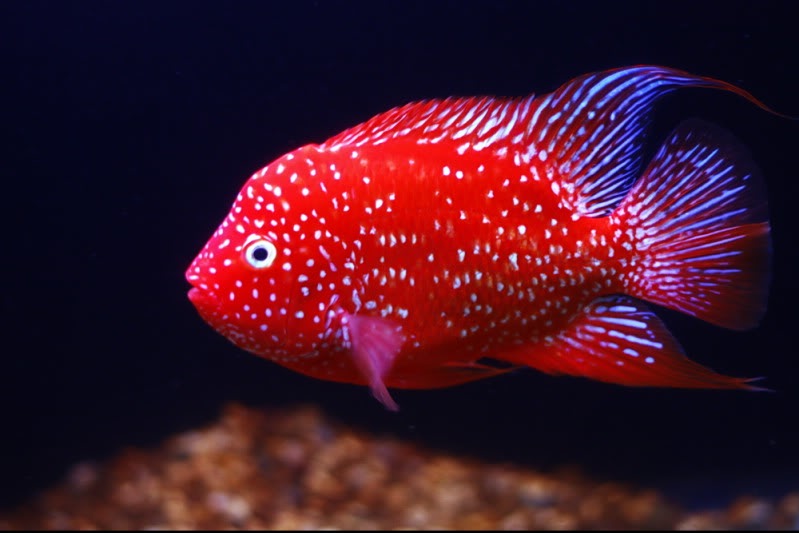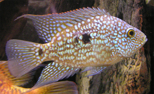 Nombre común: Cíclido red Texas, Cíclido Perlado rojo, Cíclido Perla, en inglés Red Texas y Pearscale cichlid.