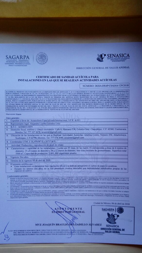 Ejemplares de talla de 5 a 6cm , criados en laboratorio, bellos ejemplares, se hacen envios a partir de compras de 600 pesos mas gastos de envio por paqueteria.