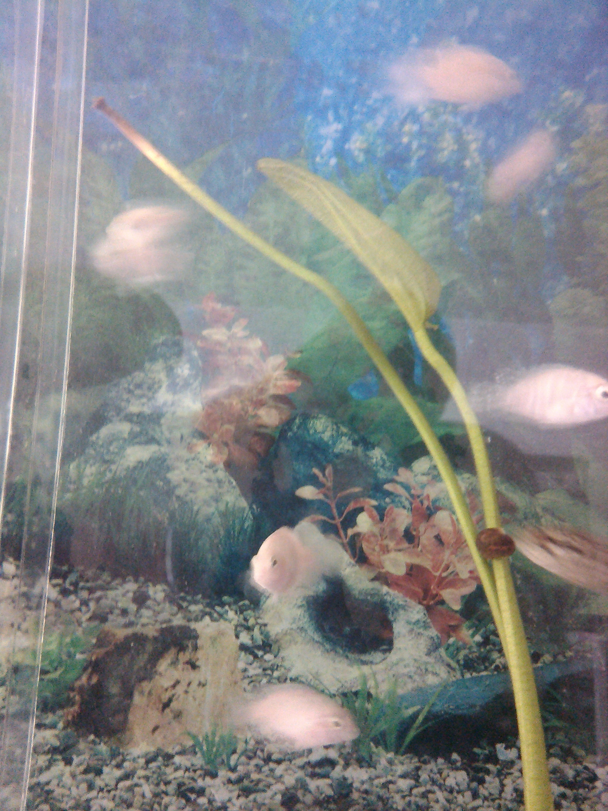 Estos pequeños ciclidos talla de 4cm ,muy activos en todas las partes del acuario, muy resistentes y se adaptan a cualquier alimento comercial.