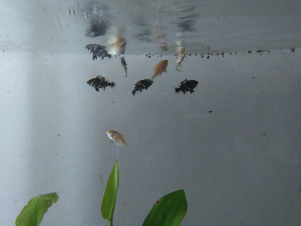 Bellos ejemplares de ciclidos Oscar tigre verde y albino, talla chica de 3cm, precio especial de mayoreo a partir de 5 ejemplares.